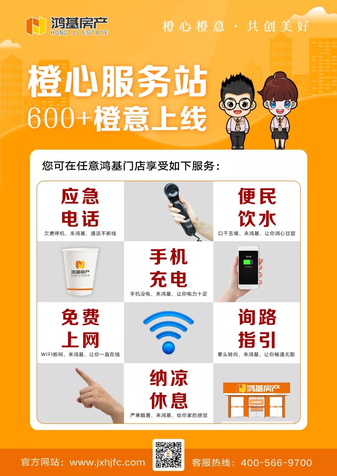 当你去到一个陌生的地方 导航又不给力时, 别担心,来鸿基橙心服务站吧~ 鸿基房产精耕社区,每一位经纪人 都非常熟悉周边小区位置, 他们都是你的活地图…… 不管是严寒还是酷暑 别担心,来鸿基橙心服务站吧~ 进来坐坐,休息休息 让你感受在家之外的温暖 除了6大便民服务 如您有任何需要帮助的地方 鸿基房产600+社区门店 2000+经纪人竭诚为你服务 开放城市: 南昌 · 吉安 · 抚州 · 上饶 · 高安 · 宜春 · 贵阳